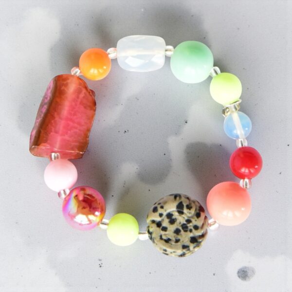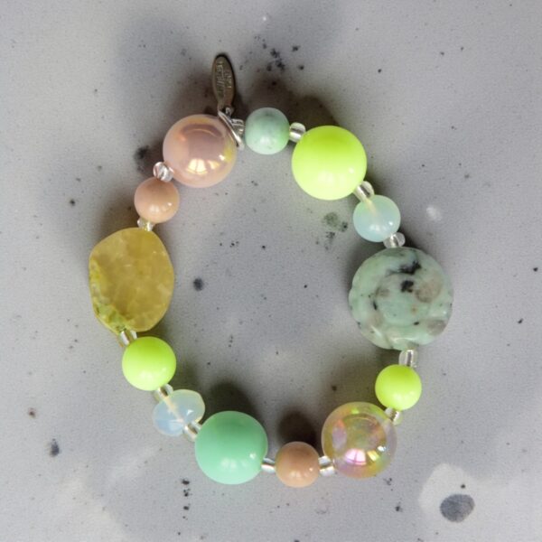 Passend zu unserer Halskette "Callie" haben wir ein Armband gefertigt. Wie die Kette ist auch das Armband Callie aus Botswana Achat, grauem Achat, Jaspis, Glas,925er Silberkugeln,Holz und versilberten Elementen.Länge 18cm, insofern nicht anders gewünscht