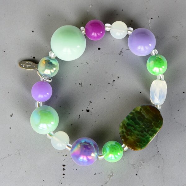 Unikatschmuck- wunderschönes Edelsteinarmband aus einem vielfältigen Edelstein Mix, Jade, Amethyst, Rosenquarz, Tigerauge uvm. damit wird dieses Traumstück ein zauberhaftes Schmuckstück. Länge ca 18 cm, geziert mit einer wunderschönen Lotusblütenperle 24K vergoldet in Goldfarben. Dieses, wie alle unsere Armbänder werden in unserem Atelier in Handarbeit gefertigt, Schmuckstücke mit einem Mix aus Steinen gleichen daher nie einem der anderen. Wir bemühen uns die Farben so weit wie möglich am Original zu halten. Edelsteinkugeln poliert, Kugelgrösse 10mm, goldfarbene Lotusblüte
