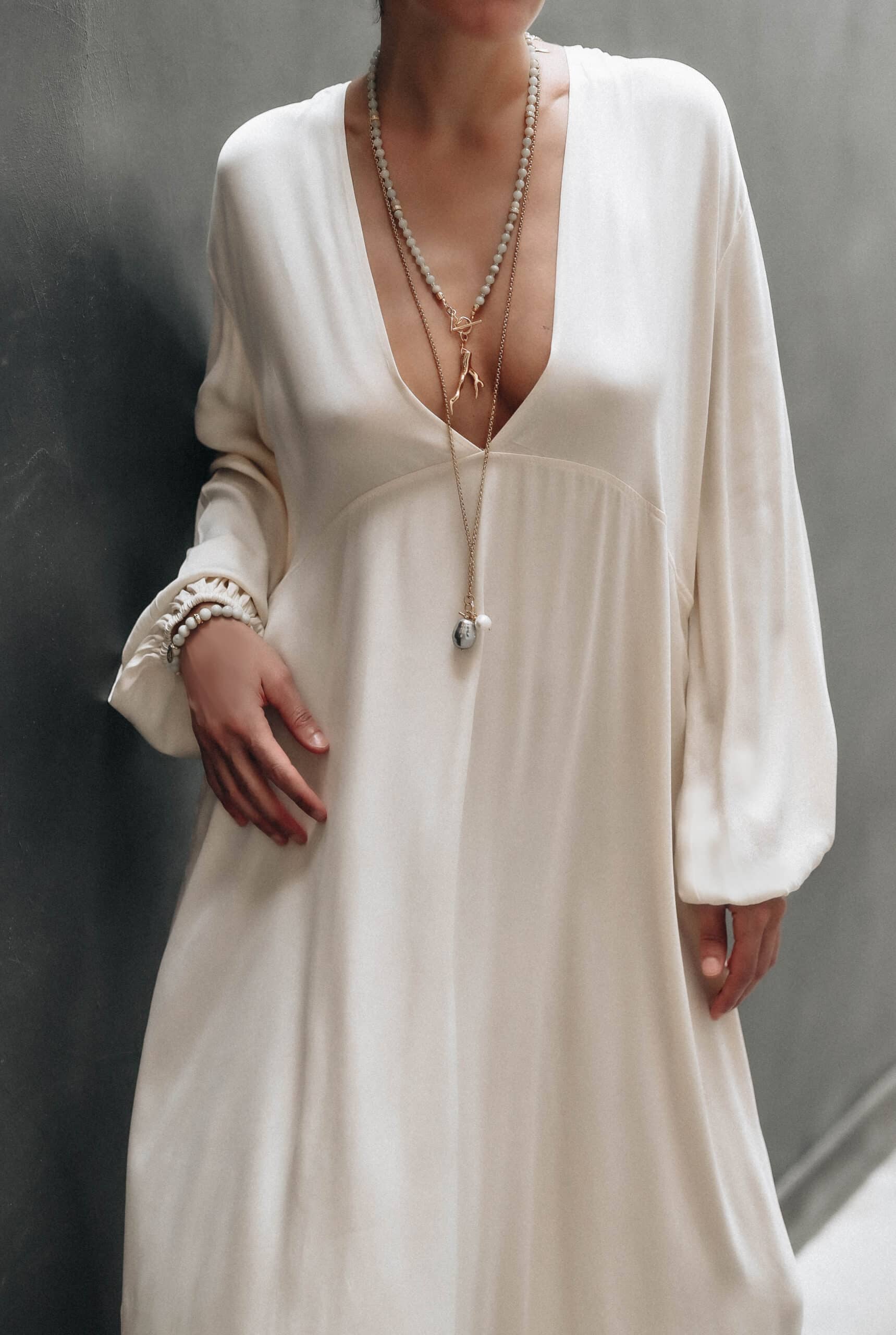 79,95 €Bettelkette in Beige mit Fossil Jaspis – Lange Boho Halskette mit Horn Stern