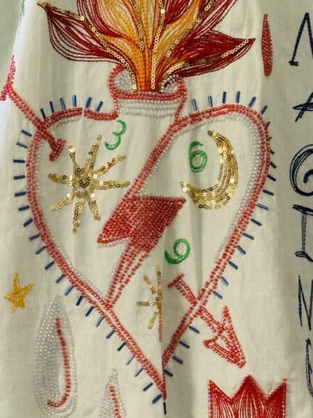 Diese Kette ist ein edler Style Catcher für jedes Outfit. Handgefertigt aus farblich abgestimmten Perlen mit dunklem Ebenholz und Zuchtperlen. Handbemalte Glas und Keramikperlen machen dieses Stück zu einem kleinen Kunstwerk. Mit einer kleinen magischen Hand in drei D, welche gute Dinge empfängt. Aus versilbertem Metall und kleiner Zuchtperle.