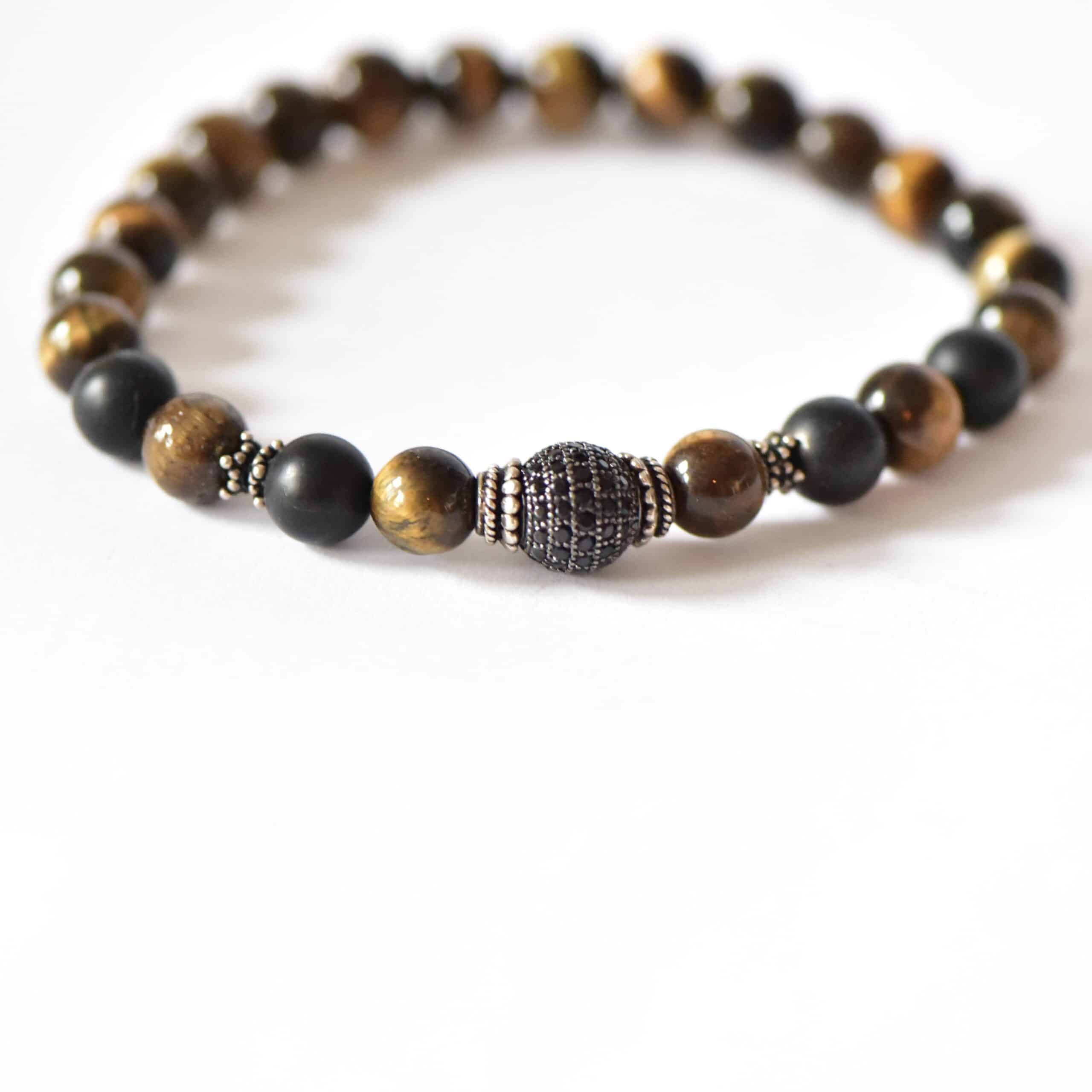 Die Kombination aus Tigerauge und Onyx verleiht dem Armband eine kraftvolle, maskuline Ausstrahlung und sorgt gleichzeitig für zeitlose Eleganz.