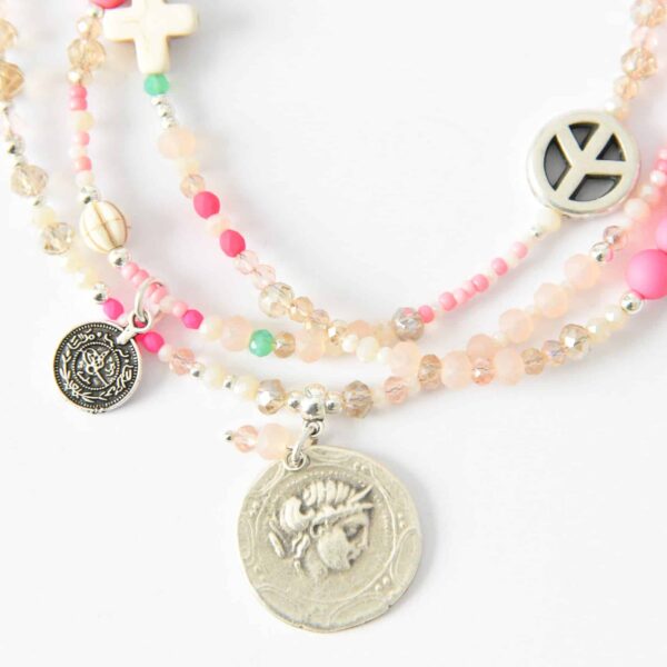 Juwelenkind Bettelkette „Patras“ mit farbigen Highlights und griechischer Münze