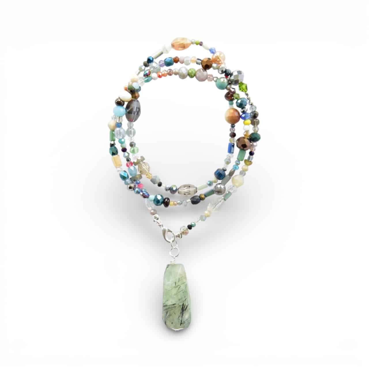 Materialien: Facettierte Kristallperlen, Großer kantiger Phrenit, jede Kette ist aufgrund der Steingröße und Farblichen Reihenfolge ein Unikat.