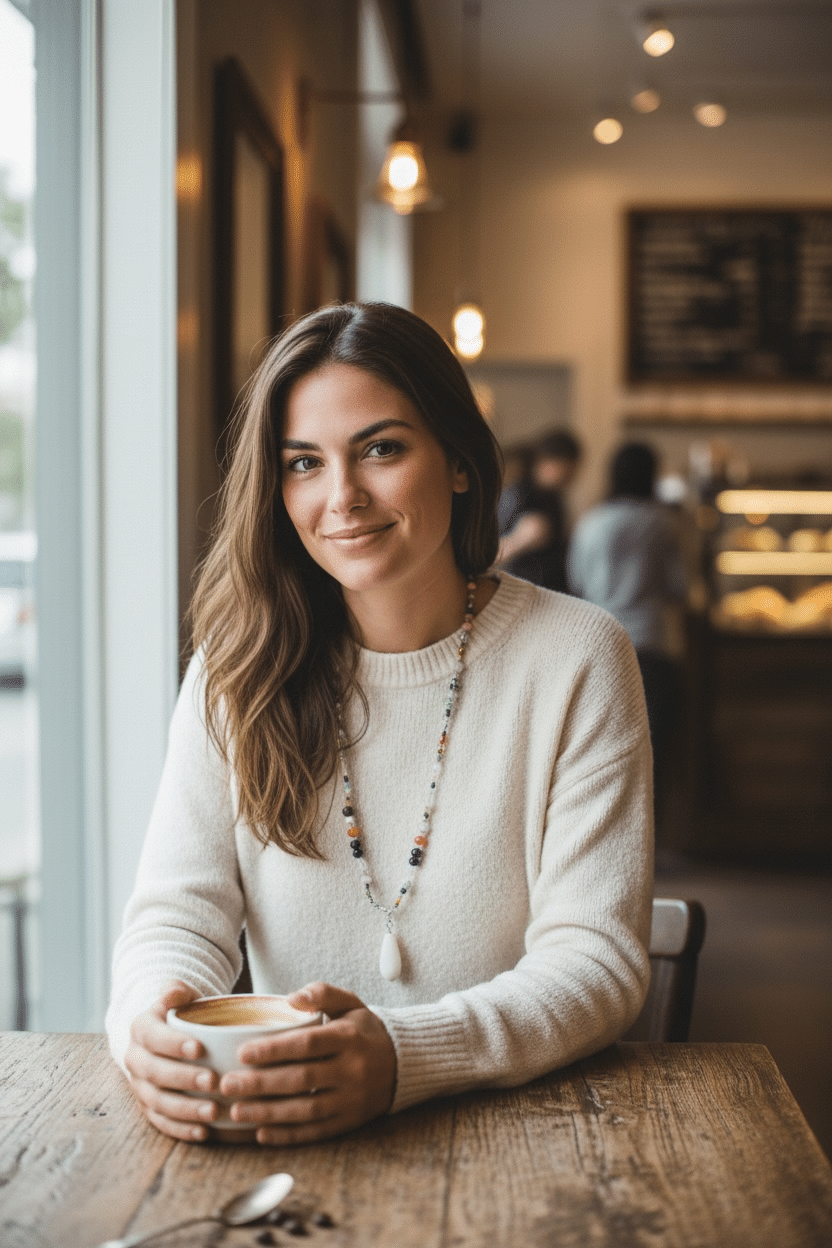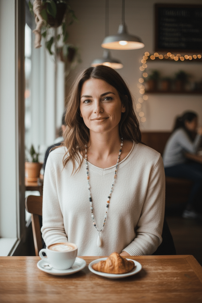 Ein absoluter Perlentraum und schöner Hingucker für herbstliche Outfits in warmen weiß und beige Tönen. Die Halskette hat einen Karabinerverschluss und lässt sich neben der lang getragenen Variante auch doppelt gelegt kurz tragen, zum Beispiel zu einer Bluse.