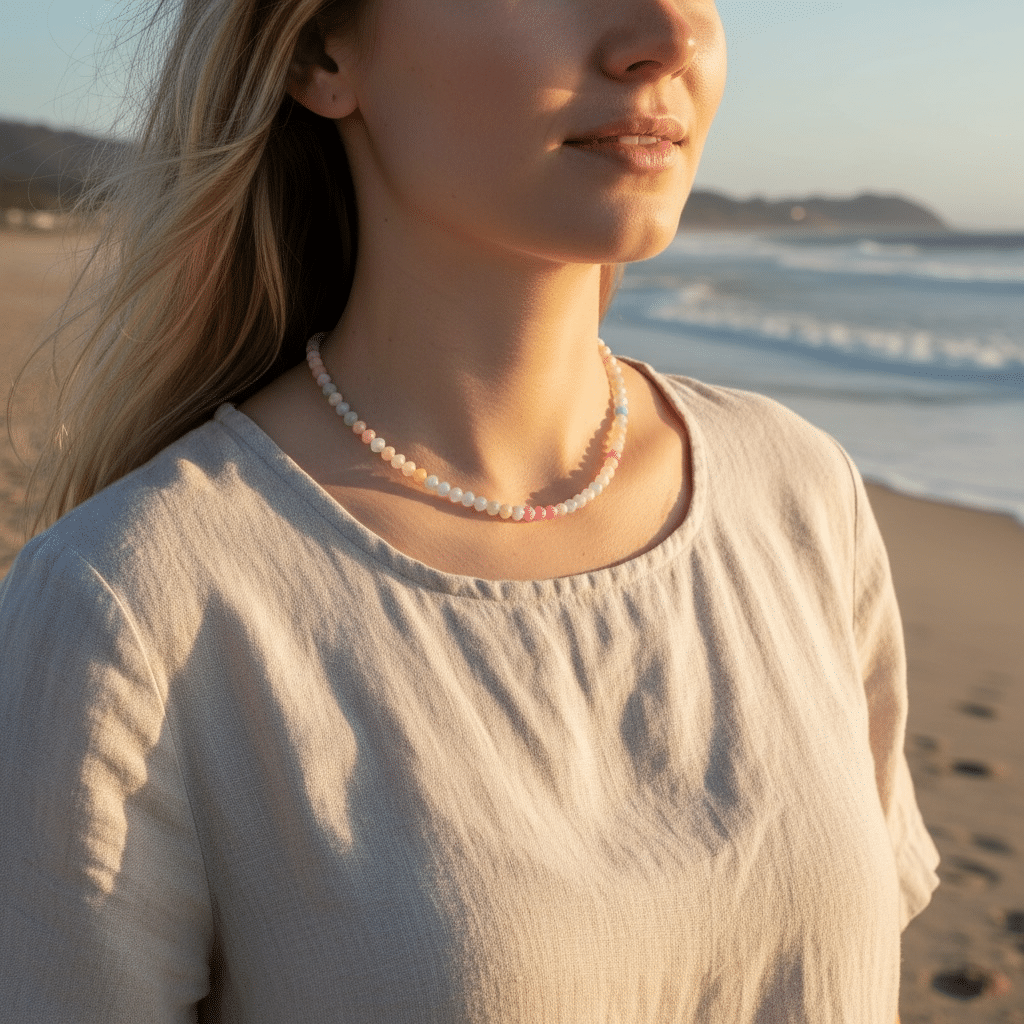 Tauche ein in die Pastellpracht unserer Halskette aus schönen Edelsteinrondellen