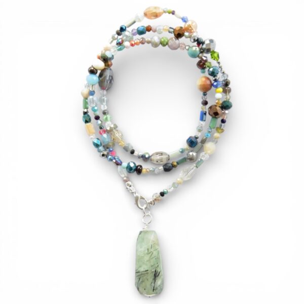 Materialien: Facettierte Kristallperlen, Großer kantiger Phrenit, jede Kette ist aufgrund der Steingröße und Farblichen Reihenfolge ein Unikat.