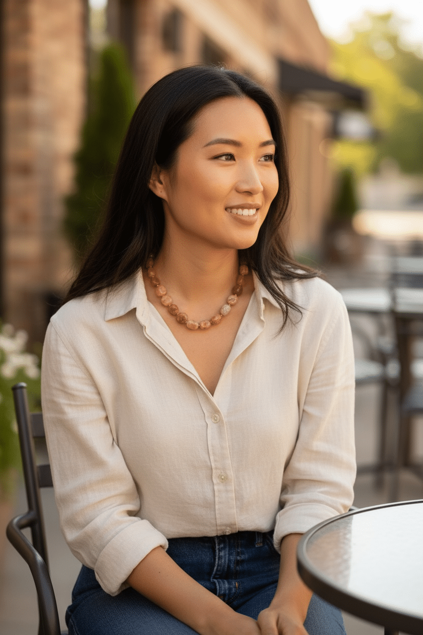 *LIMITIERT* Mittellange Halskette in Edelsteinoptik in Caramel Beige