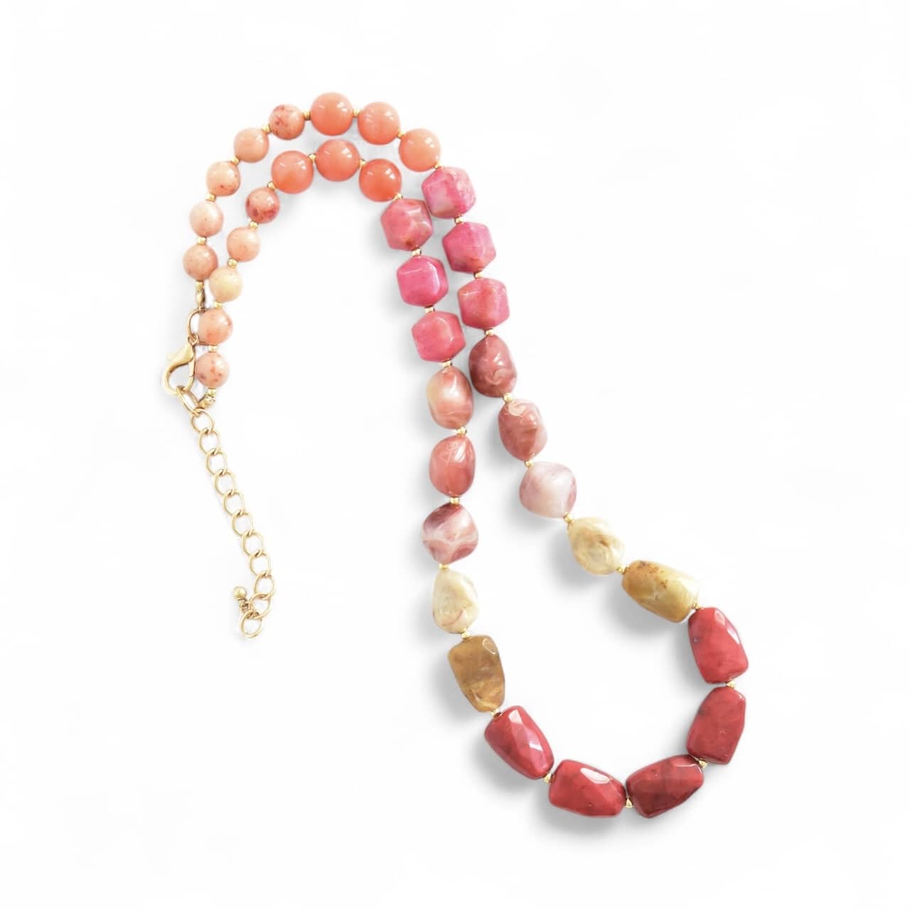 Halskette Lucille mt Rosenquarz – Schöner Mix aus Glas & Edelsteinen mit Highlights in Neon
