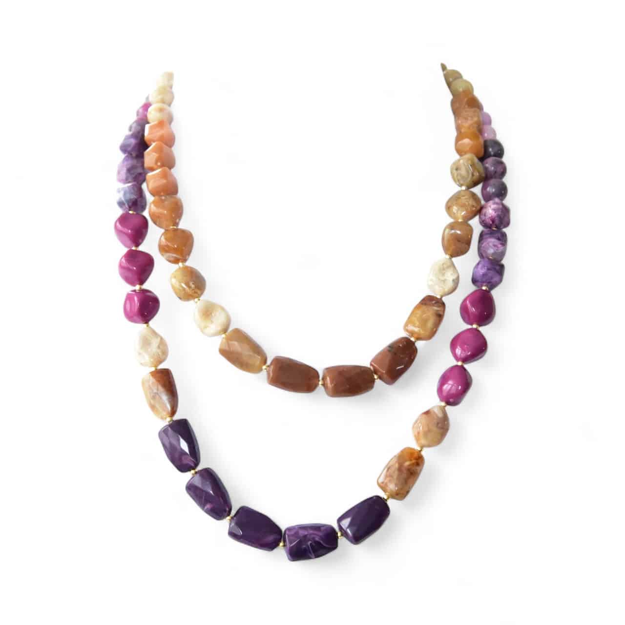 Unsere Halskette in edler Edelsteinoptik vereint hochwertige, individuell marmorierte italienische Polymer-Perlen, die farblich harmonisch aufeinander abgestimmt sind. Die leichten Perlen tragen sich besonders angenehm und verleihen jedem Outfit einen stilvollen Akzent.
