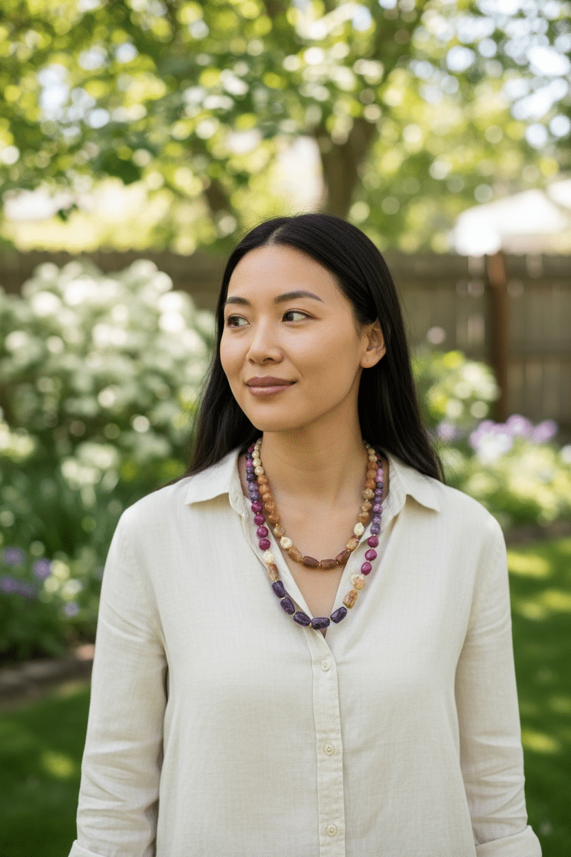 Bitte beachten: Handarbeit, die verwendeten Edelsteine und Naturmaterialien haben eine natürliche Varianz, daher gleicht keine Kette exakt der anderen