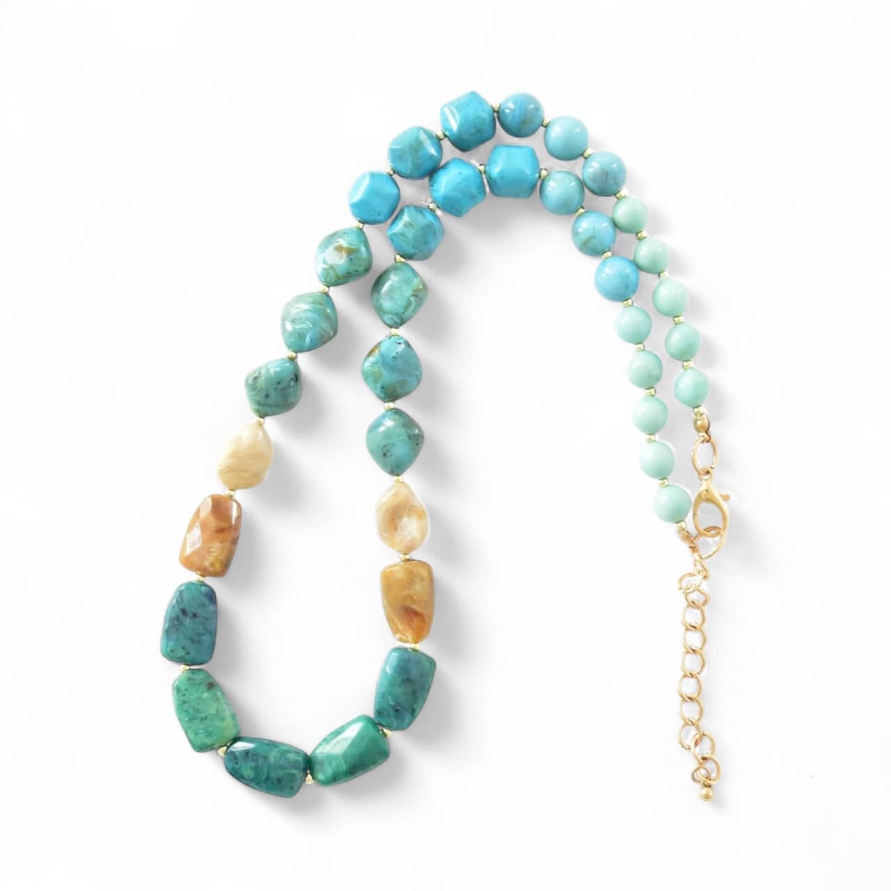 *LIMITIERT* Mittellange Halskette in Edelsteinoptik in Türkis Braun