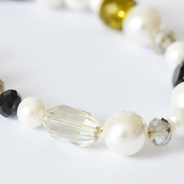 - Material: elastisches Nylon, unregelmäßige Zuchtperlen in Reisform, japanisches Glas vergoldet