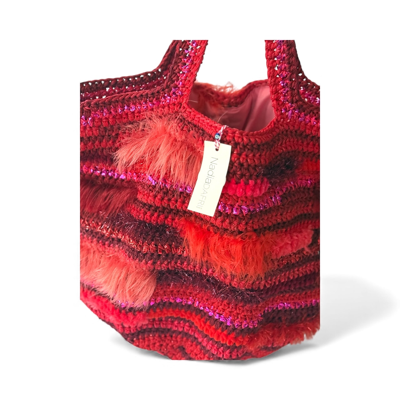 NADIA DAFRI Paris ILKNUR L Multicolor handgefertigte Designer Handtasche Bag Luxus Rot Pink Bordeaux UNIKAT unique