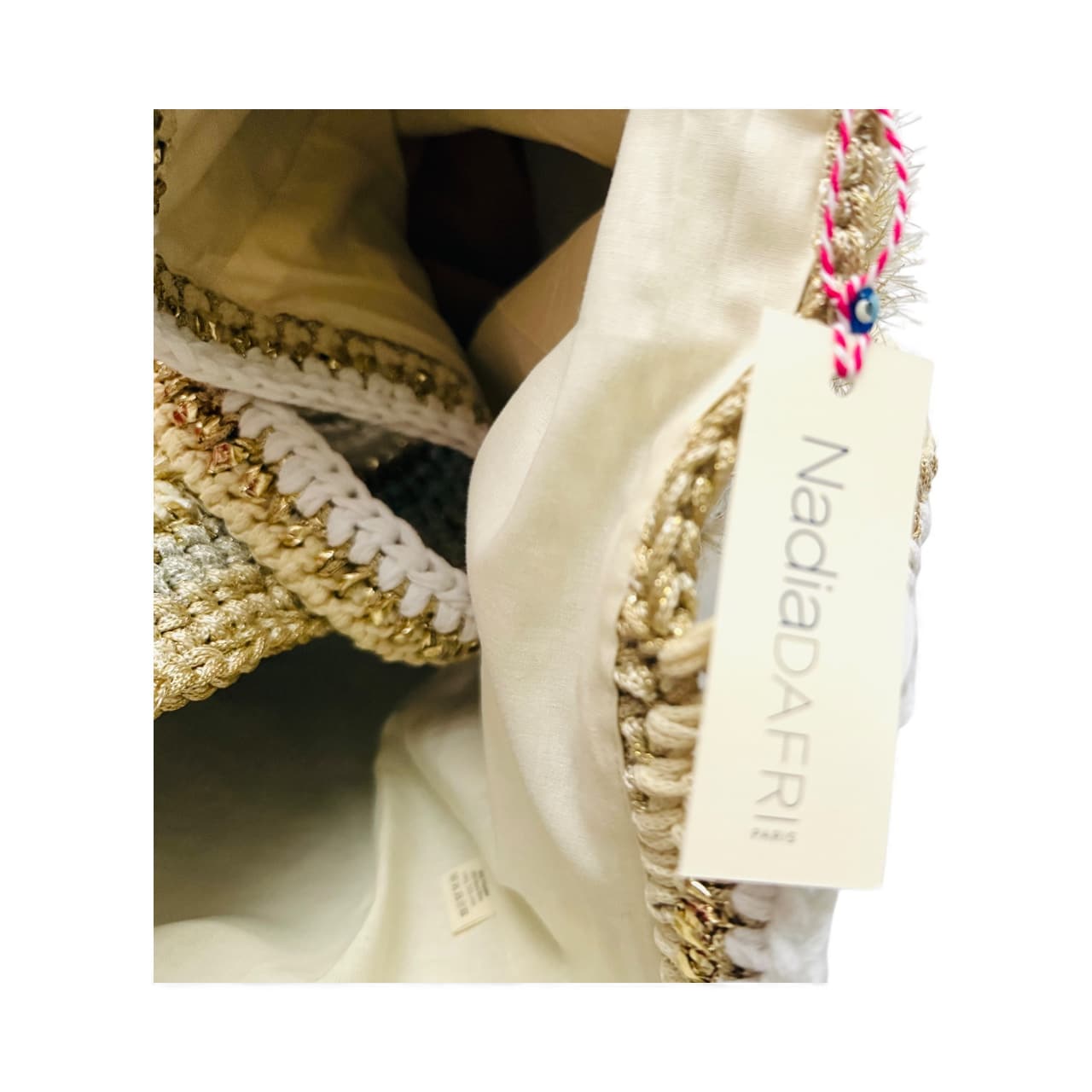 NADIA DAFRI Paris ILKNUR L Multicolor handgefertigte Designer Handtasche Bag Luxus Weiß Vanille Taupe Beige Gold Silber Hellgrau UNIKAT unique