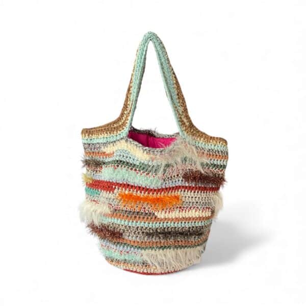 MODELL: ILKNUR Large, Farbe Rot, Pink, Bordeaux, Feuerrot, Lurex in Pink und Rot uvm. . Innenfutter Hellrosa Handwerkstechnik: Häkel Maße: 46x50cm, Boden ca 26cm , Träger ca 55 cm LängeWarum du sie lieben wirst: