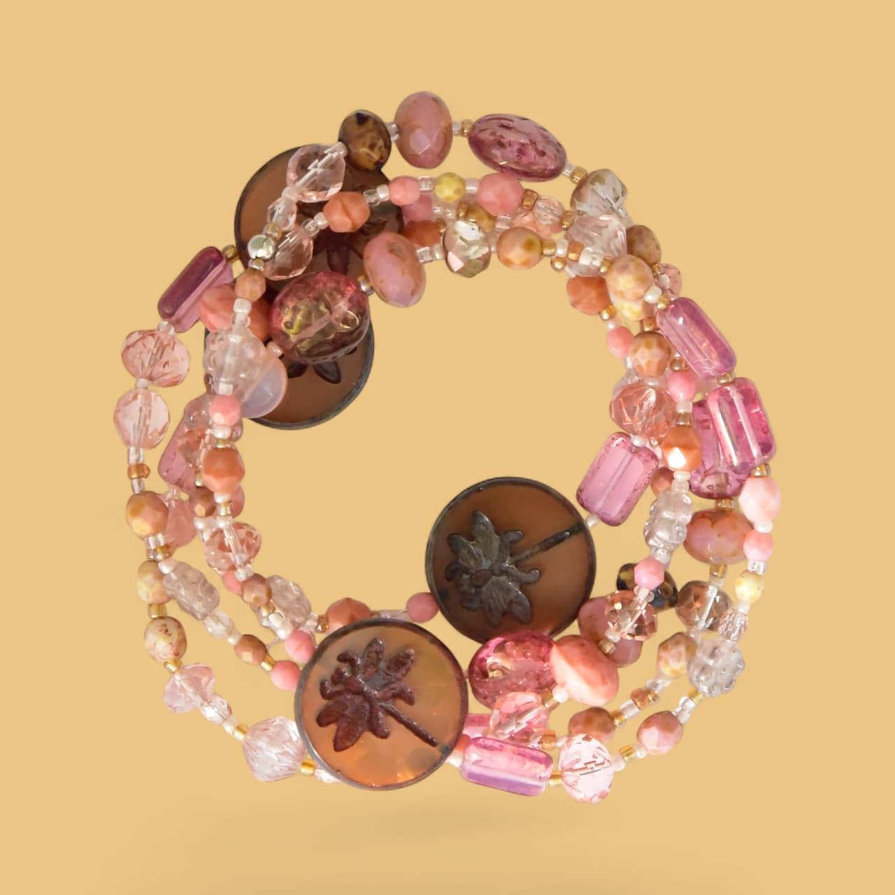 Neon als Highlight in diesem Winter. Ein absoluter Perlentraum aus Glas und Halbedelsteinen für herbstliche Outfits in warmen Pastell und rose und beige Tönen, mit leuchtenden Highlights. Die Halskette hat einen Karabinerverschluss und lässt sich neben der lang getragenen Variante auch doppelt gelegt kurz tragen, zum Beispiel zu einer Bluse.