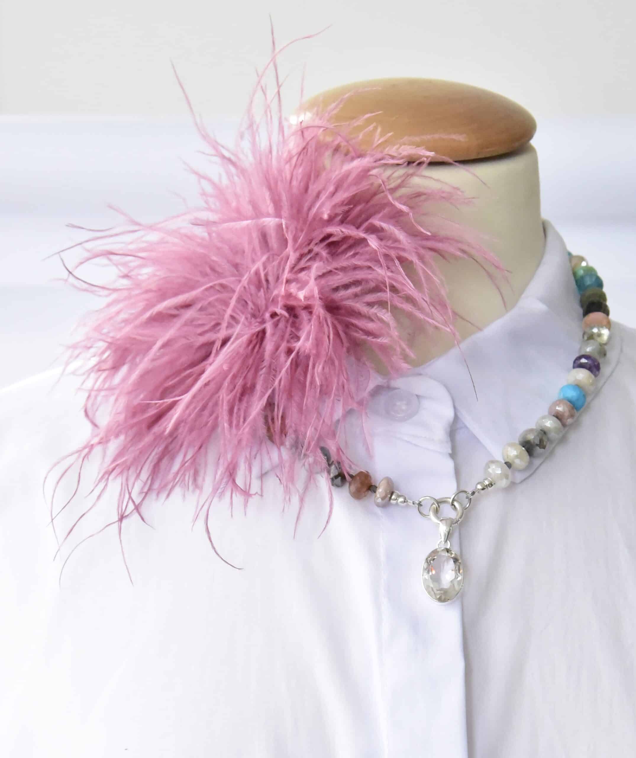 Stylische Federbrosche in Altrosa