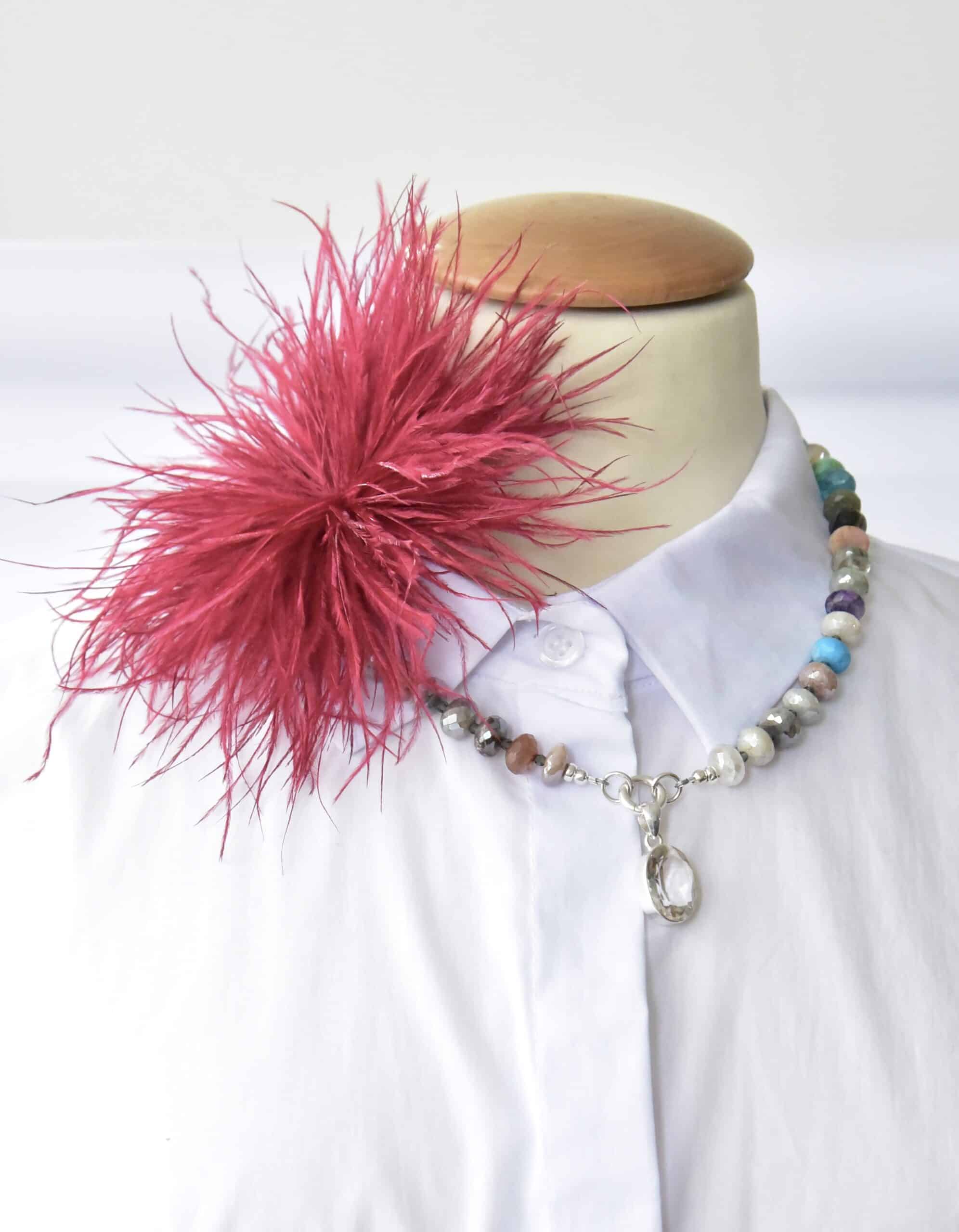 Stylische Federbrosche in Bordeaux Rot
