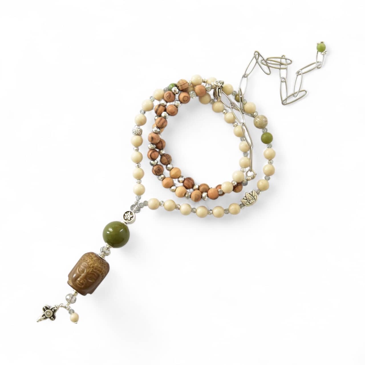 Wunderschöne Bettelkette mit Olivgrünen Akzenten