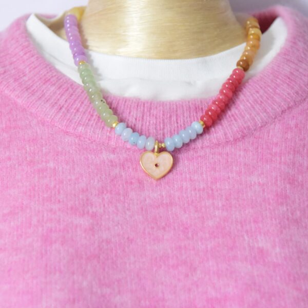 Jade, Rosenquarz, Aquamarin extravagante Edelstein Halskette mit Toggle Verschluss vergoldet und Medaillon Herz