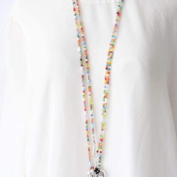105 cm Kette „Tulia“ Pastell Regenbogen mit Glasschliffperlen, und großem versilberten Elefant Anhänger, lange Variante