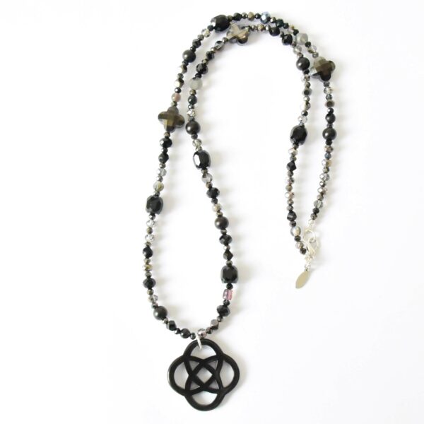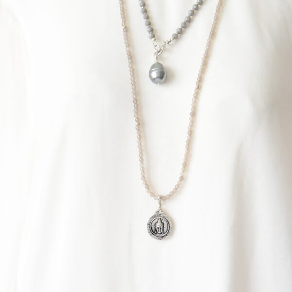 Kurzkette Allrounder „Svede“ in grau mit dunkelgrauem Tropfen aus Muschelkern und Toggle Verschluss