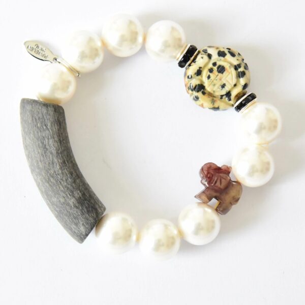 Muschelkern Armband mit Leopardenjaspis und Jade Elefant