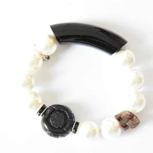 Muschelkern Armband mit Onyx und Jade Elefant mit Hornröhrchen