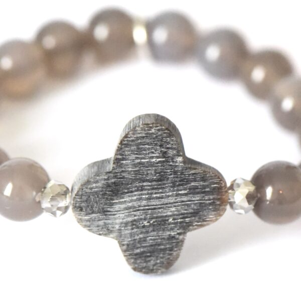 Armband grauer Achat mit mattem Horn Element in Anthrazit Große 10mm Kugeln