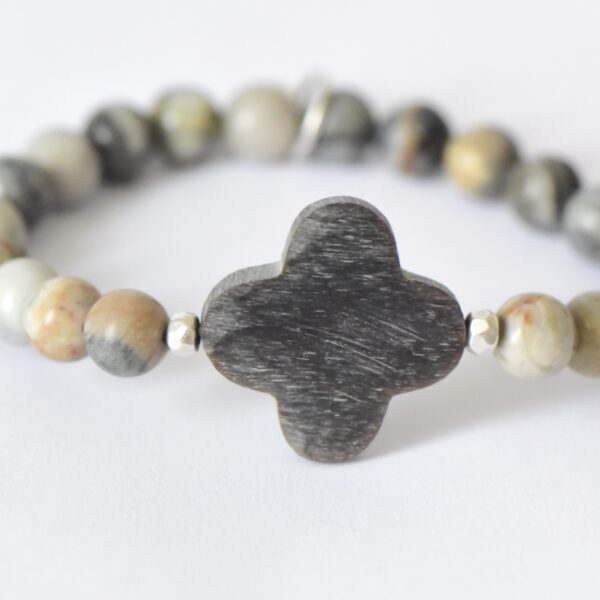 Naturfarbenes Jaspis Armband mit mattem Horn Element in Anthrazit