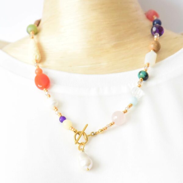 Kurzkette „Filippa“ Edelstein Mix und großer Zuchtperlen Anhänger
