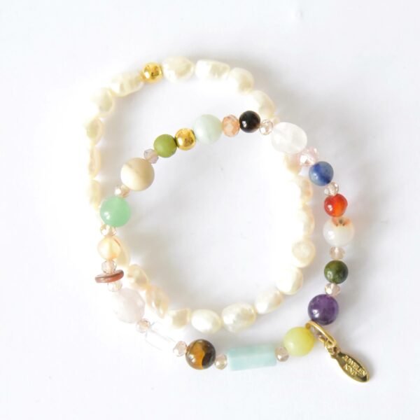 Armband Set „Filippa“ Edelstein Mix und Zuchtperlen Armband