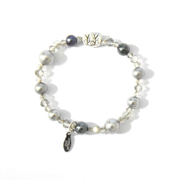 Graues Perlen Armband CLEO mit Muschelkern Tropfen