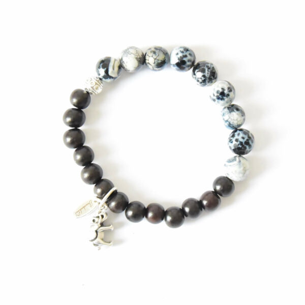 Schwarz Graues Ebenholz Armband mit Glückselefant und Spinnenachat