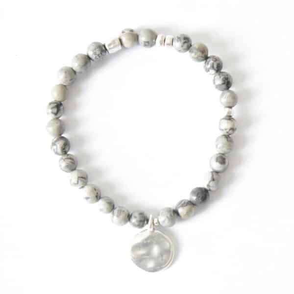 Armband Sanja aus grauem Jaspis mit versilberten Metallzierteilen