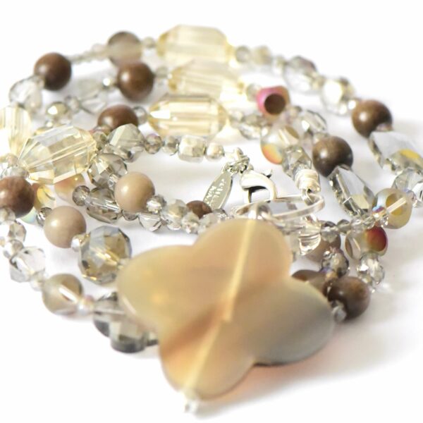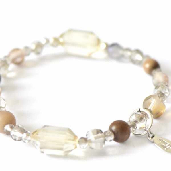 Armband Sanja in Dunklem Taupe aus Icy Obsidian und versilberten Metallzierteilen