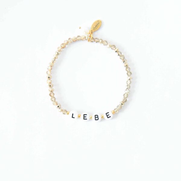 „LEBE“ positives Affirmations Armband goldene Glasperlen Buchstaben Zuchtperle Gold