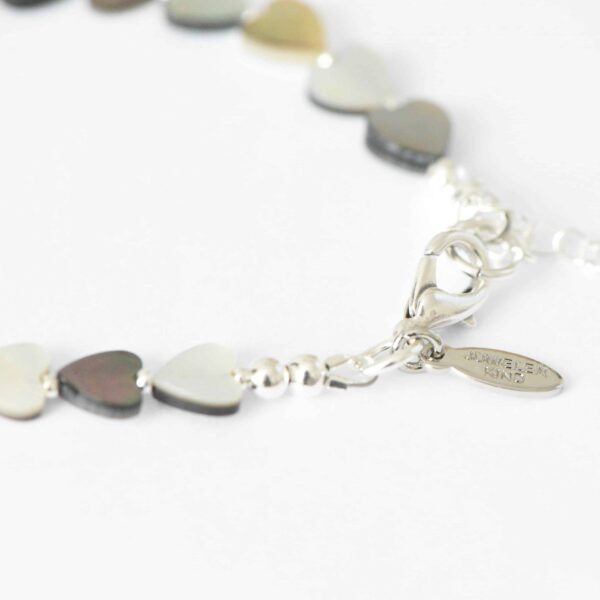 Kleine Herzen – Zauberhaftes Armband aus kleinen aneinandergereihten Lipp Shell Muschel Herzen in schimmerndem beige schwarz