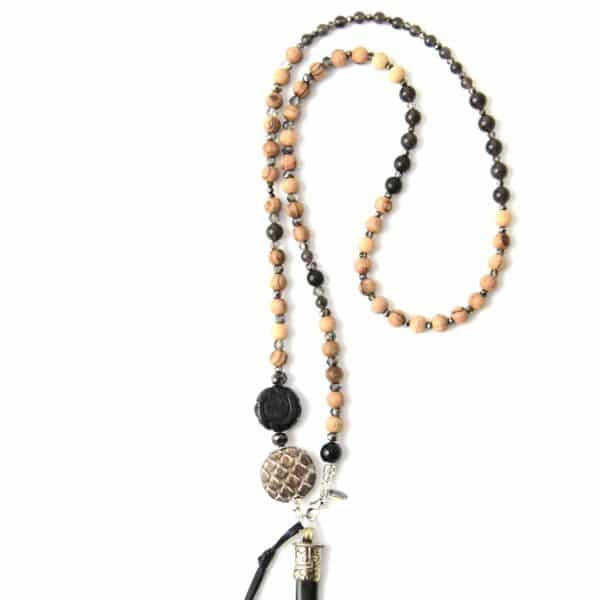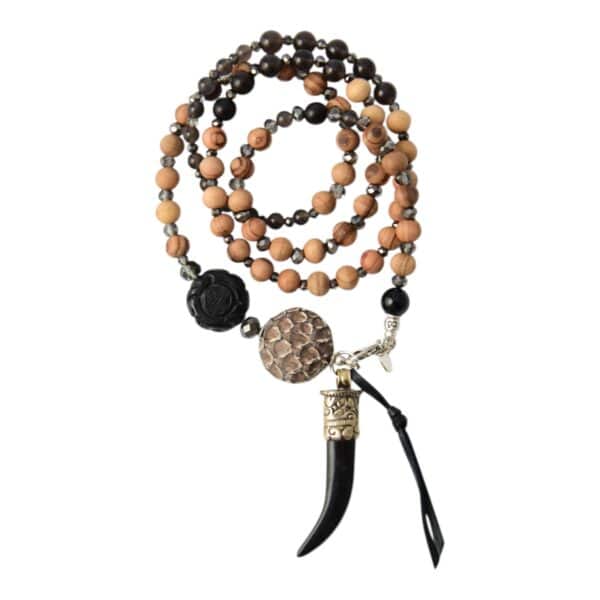 Bettelkette Olivenholz Schwarz Braun Tibet Zahn
