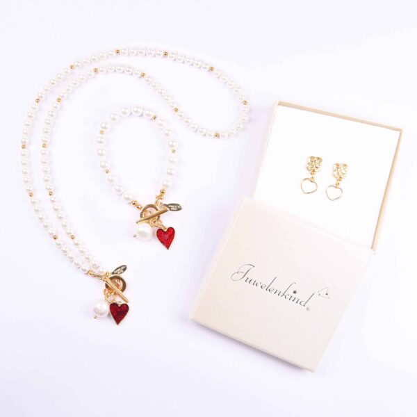 Perlenkette Valentina Ivory Perlen und Herz Amulette